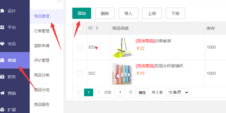 然后是添加產品或者管理產品